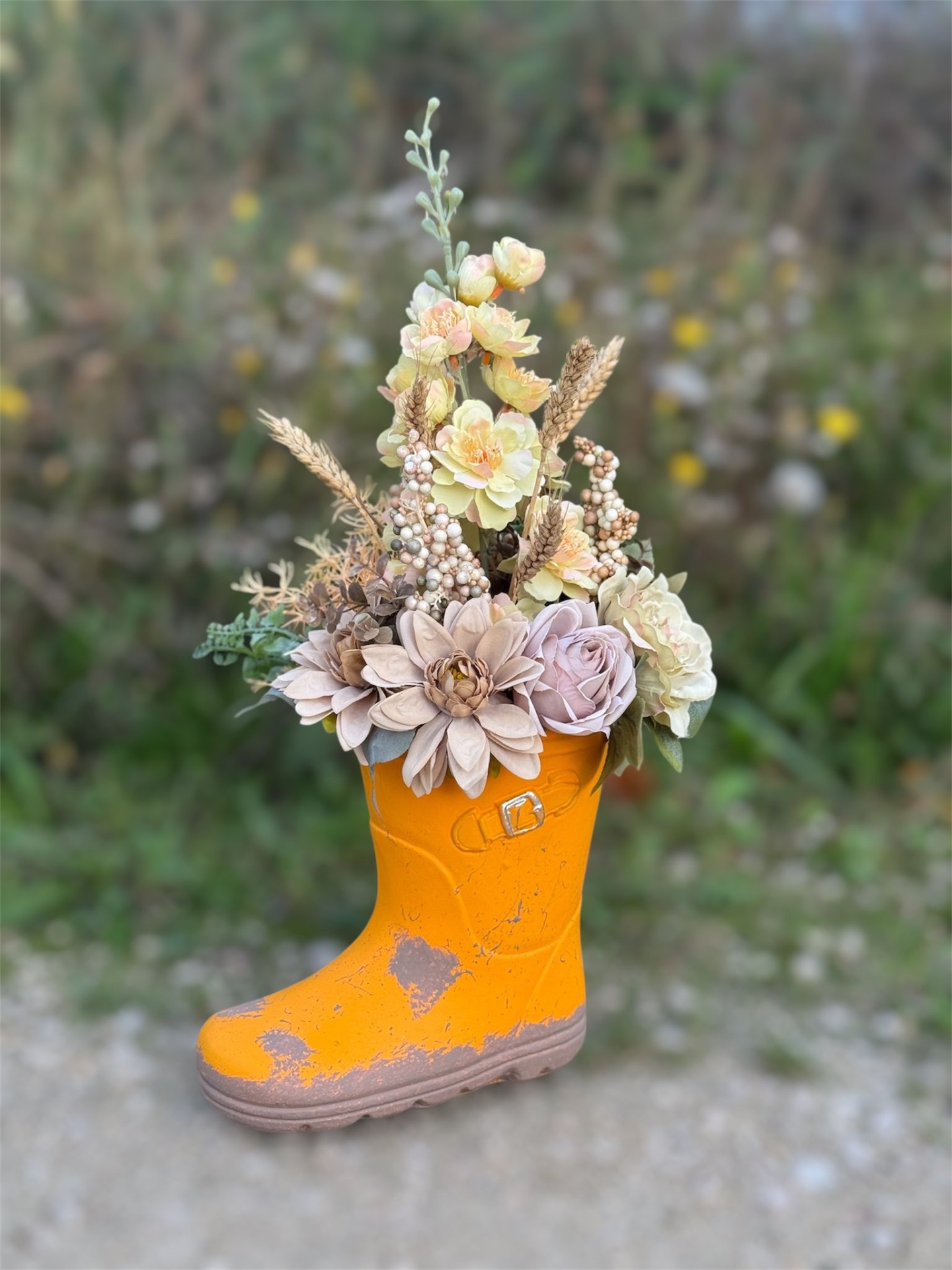 Ehhez az esős, borongós időhöz nagyszerűen passzol ez a csizmás őszi szépség. Ősz inspirálta forma és színek, mégis vidám, ami egy kis derűt csempészhet a napodba A csizma nehéz kerámia, ellenáll a szélnek, fedett teraszra is bátran ajánlom. Egy darab készült, ugyanilyet már nem tudok készíteni.